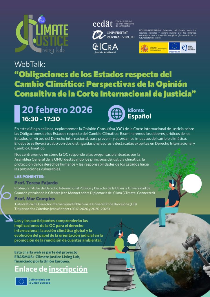 20/02 Webtalk: “Obligacions dels Estats respecte del Canvi Climàtic: Perspectives de l’Assessorament de la Cort Internacional de Justícia”