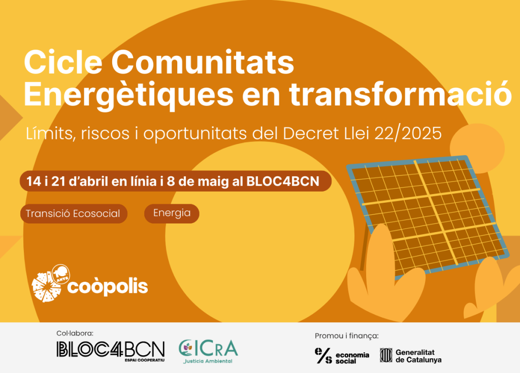 Des de CICrA Justícia Ambiental coorganitzem la tercera edició del cicle de xerrades en col·laboració amb BATEC, Pol Cooperatiu per la Transició Energètica que enguany es titula “Comunitats energètiques en transformació: límits, riscos i oportunitats del Decret llei 22/2025”.