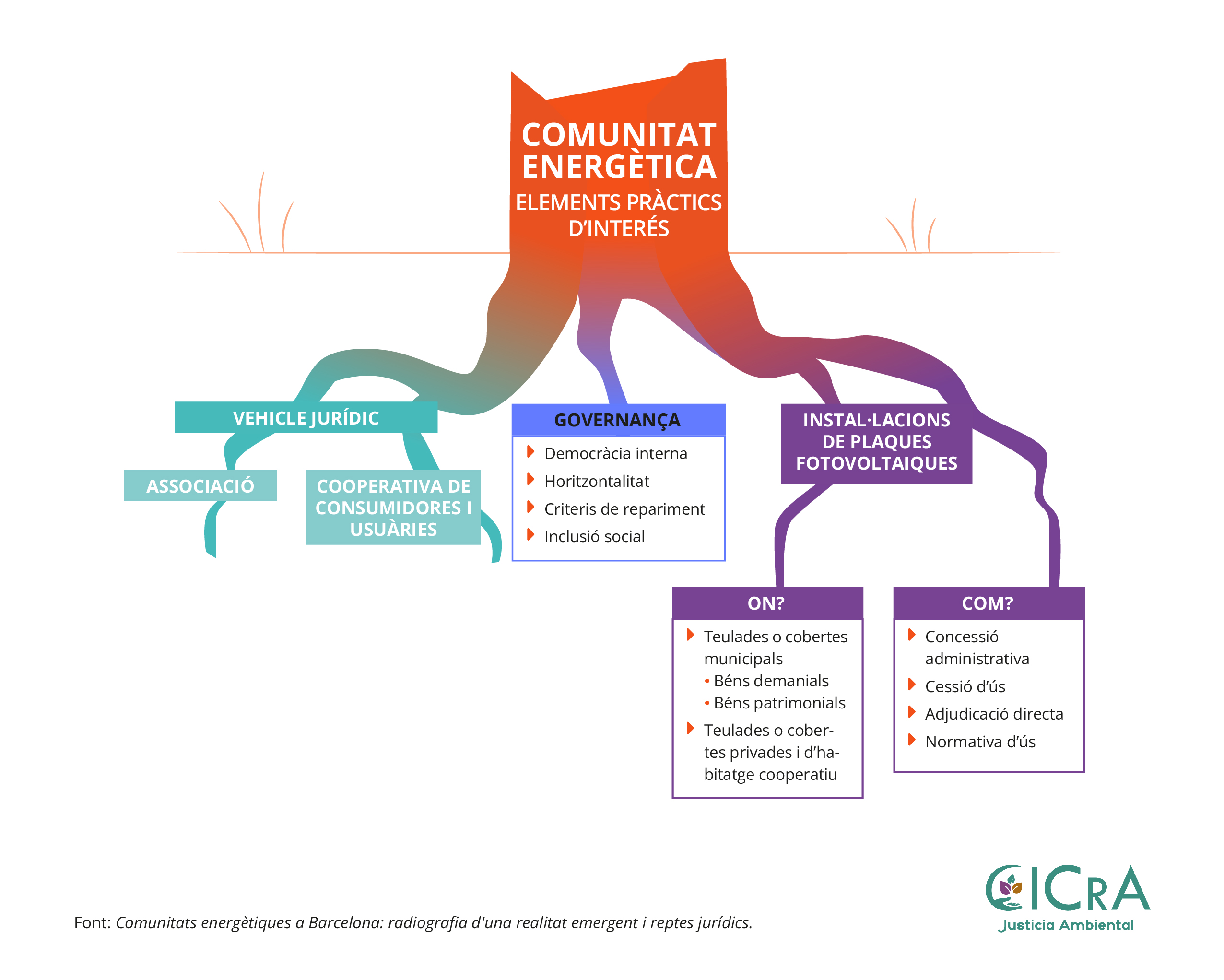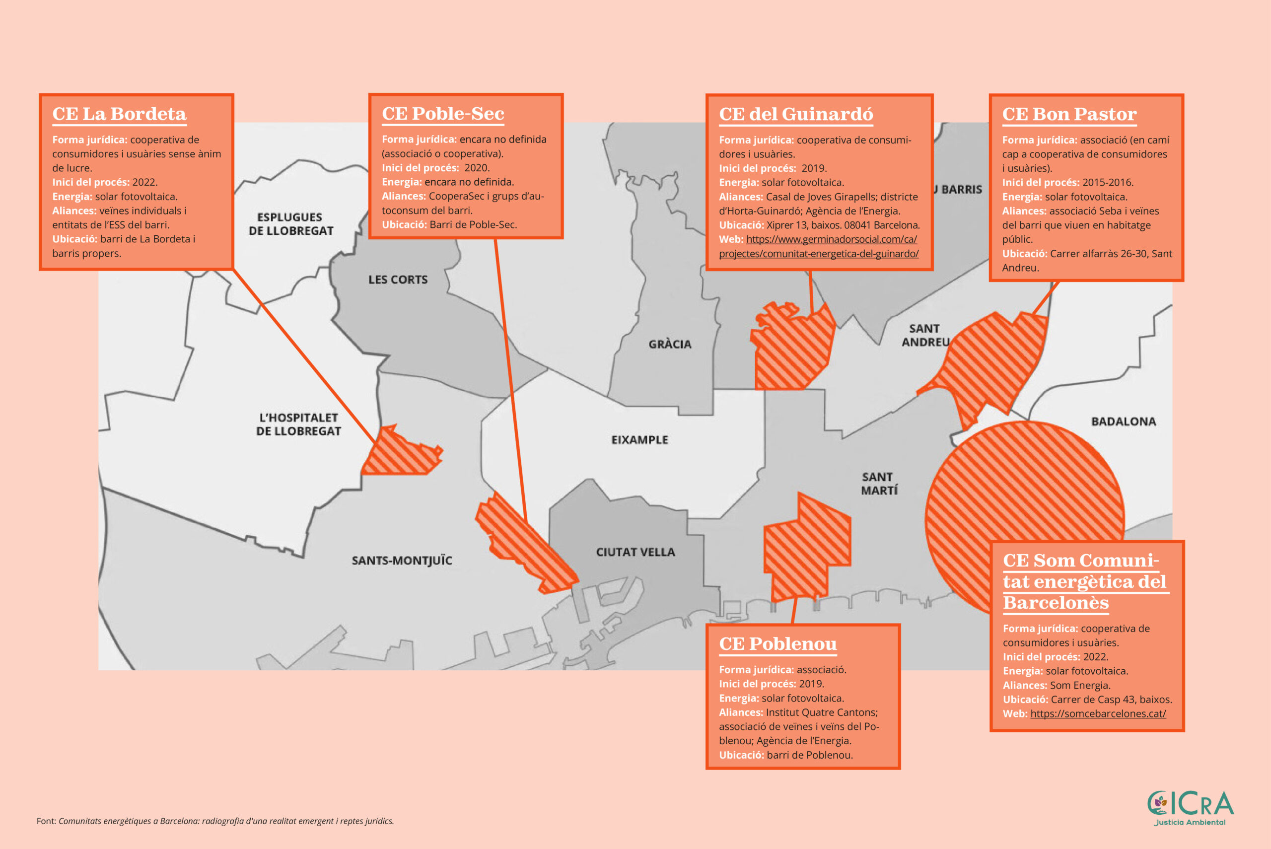En el marco de este proyecto, se elaboró la guía “Comunitats energètiques a Barcelona: radiografia d’una realitat emergent i reptes jurídics”, en la cual se ha contado con la colaboración y participación del tejido asociativo vinculado a la transición energética y ecosocial presente en el distrito de Sants-Montjuic de la ciudad de Barcelona.